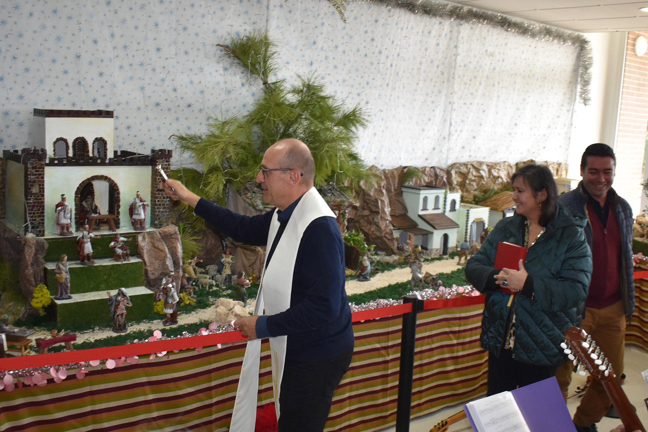 El belén, que recrea diferentes pasajes del Nuevo Testamento y puede visitarse de manera gratuita, ha sido bendecido por el párroco de la iglesia de Nuestra Señora de la Salceda, Antonio Sánchez. “Enhorabuena a los responsables de este belén, que cada año se prepara con tanto cariño e ilusión, y que tanta alegría y felicidad da al centro”, señala Noguera.