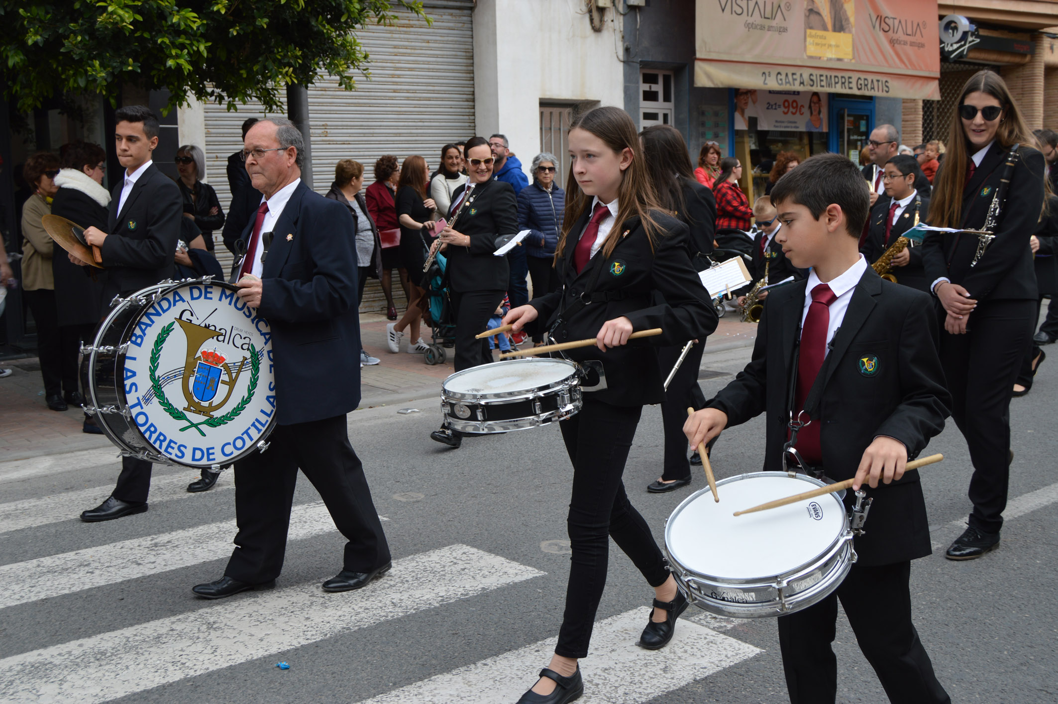 La procesión infantil de Las Torres de Cotillas recorrió en la tarde de ayer domingo 7 de abril las calles del municipio, abriendo así los desfiles de la Semana Santa 2019. Se trataba de su tercera edición, en la que participaron cientos de niños y niñas menores de 16 años portando los tronos e imágenes de sus respectivas Cofradías elaborados a su tamaño.