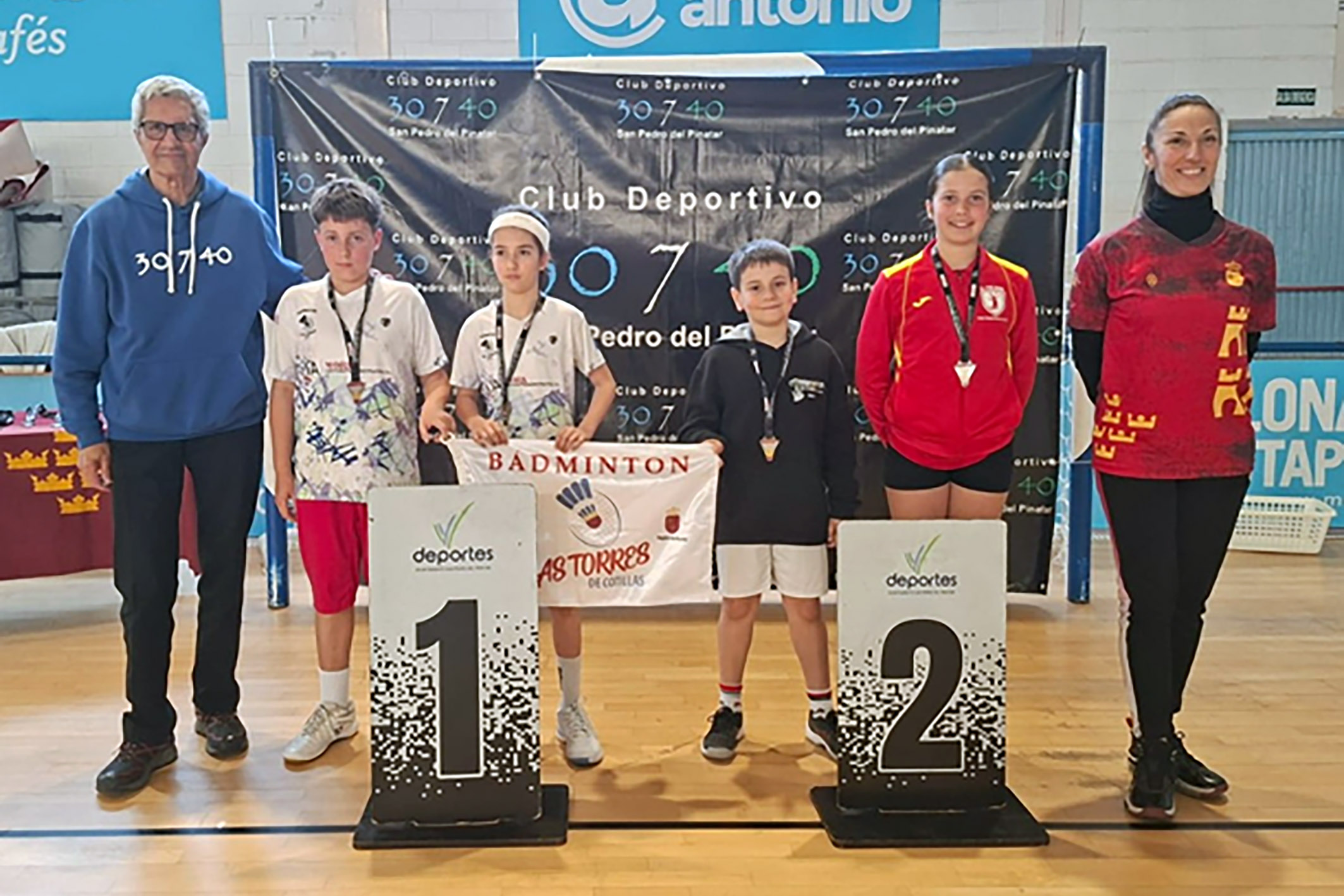 26/03/26 – El Bádminton Las Torres sigue sumando excelentes resultados esta temporada. En esta ocasión el escenario fue los campeonatos autonómicos sub-13 y absoluto disputado el pasado sábado 21 de marzo en San Pedro del Pinatar, donde la representación torreña sumó 8 de los 10 títulos en juego.