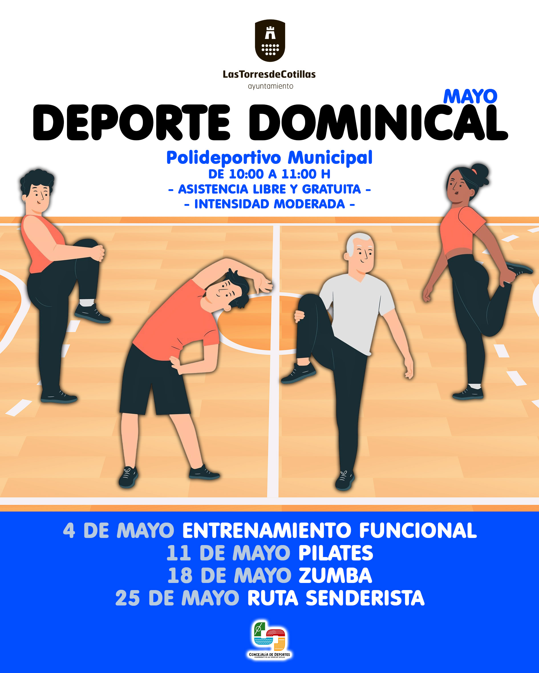 30/04/25 - | Ya están preparadas las actividades para el programa de “Deporte Dominical” del mes de mayo. Organizado de nuevo por la Concejalía de Deportes, se celebrará todos los domingos a las 10:00 horas en el polideportivo municipal.