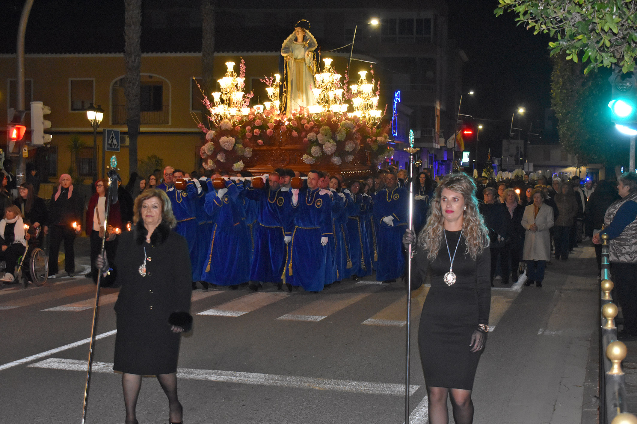 "Nos llena de cariño y fervor ver nuestras calles inundadas de azul y blanco, y sentir el respeto de esta procesión por la Dolorosa", destaca el alcalde Pedro José Noguera, que participó en el desfile junto a otros miembros de la corporación municipal.