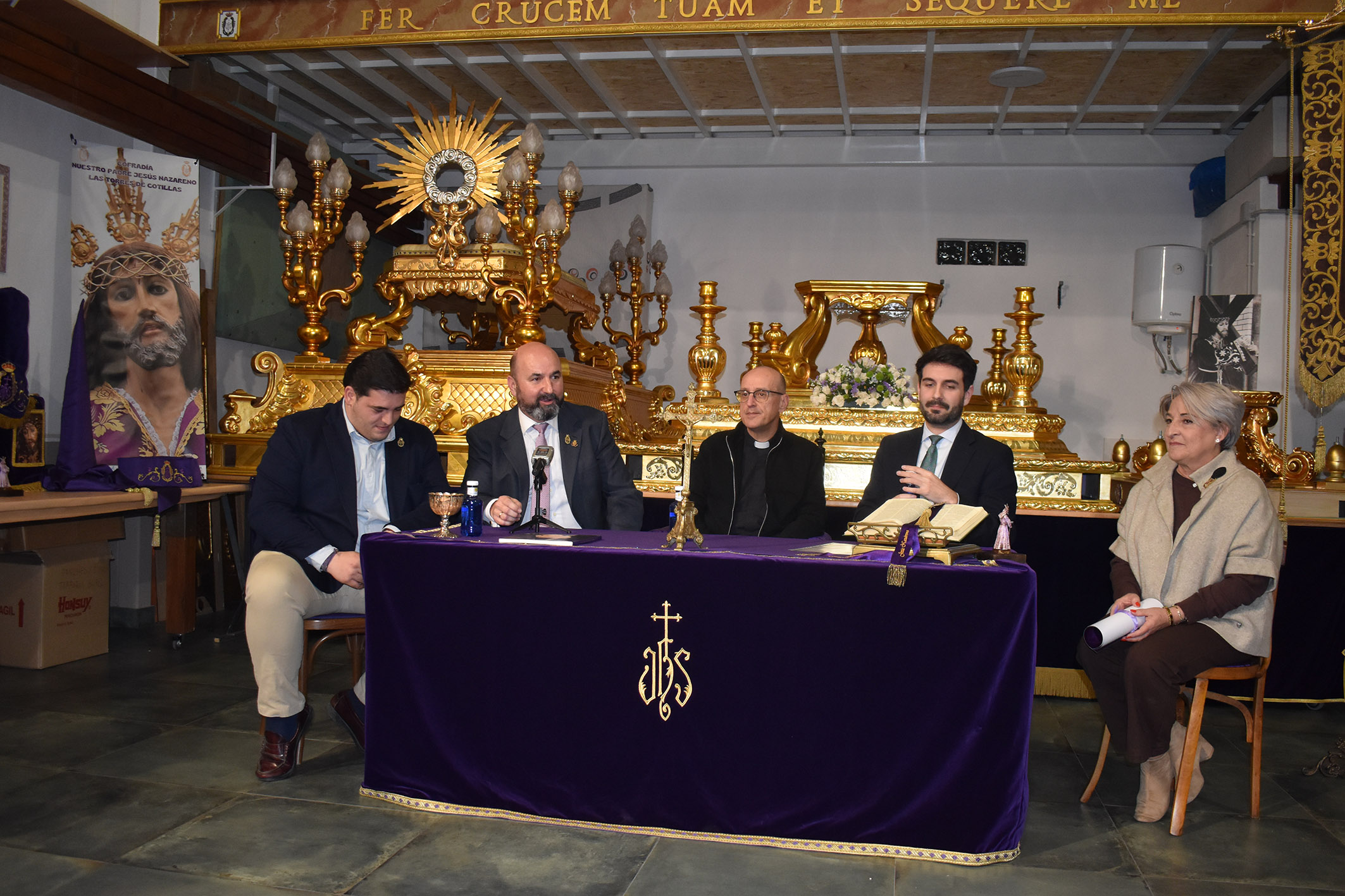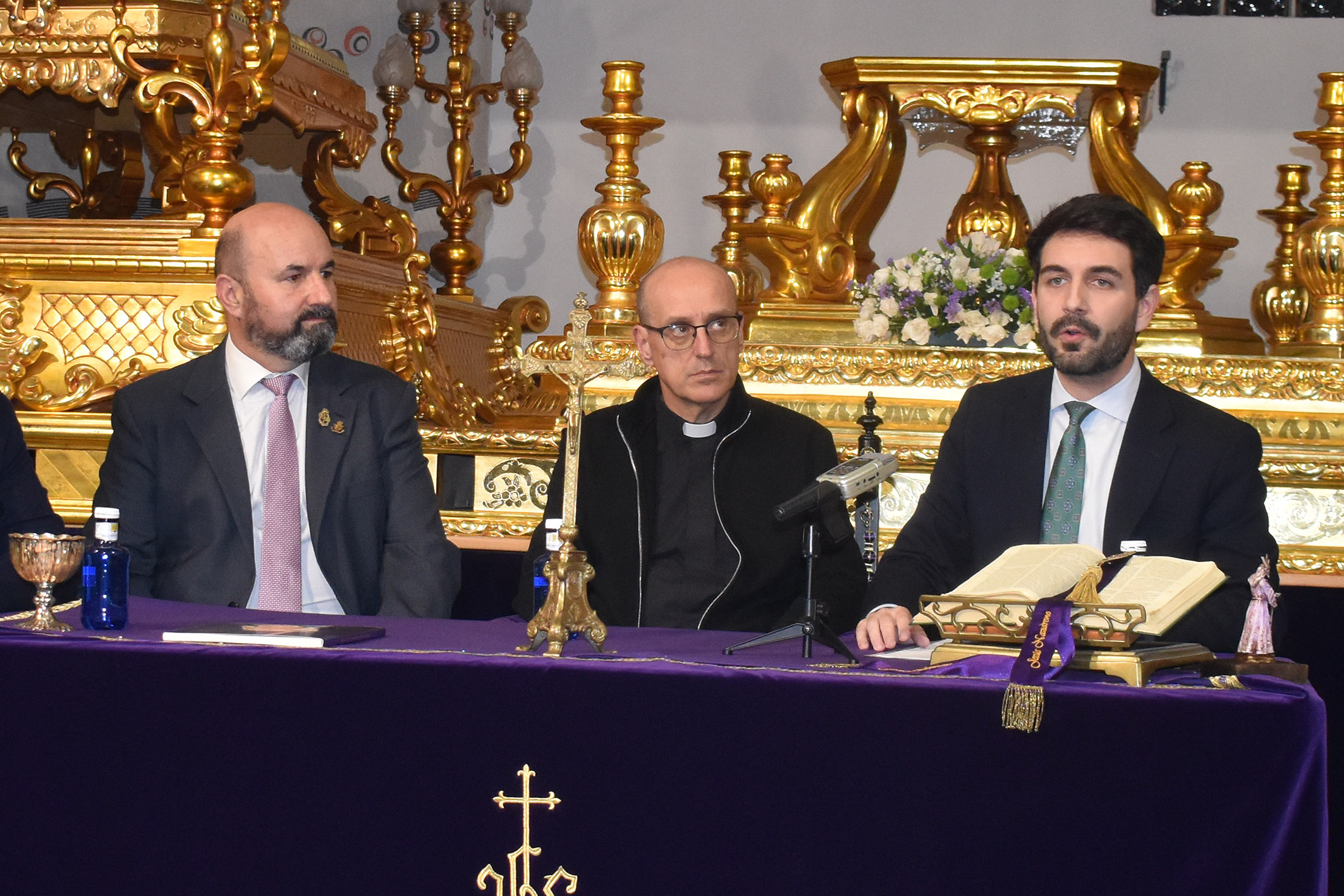 Además, en este encuentro el párroco de Nuestra Señora de la Salceda, Antonio Sánchez, bendijo el nuevo trono que saldrá portando la imagen de Nuestro Padre Jesús Nazareno en las procesiones de Viernes Santo por la mañana y Domingo de Resurrección. Este trono ha sido tallado en los talleres Lorente de la pedanía murciana de Nonduermas.