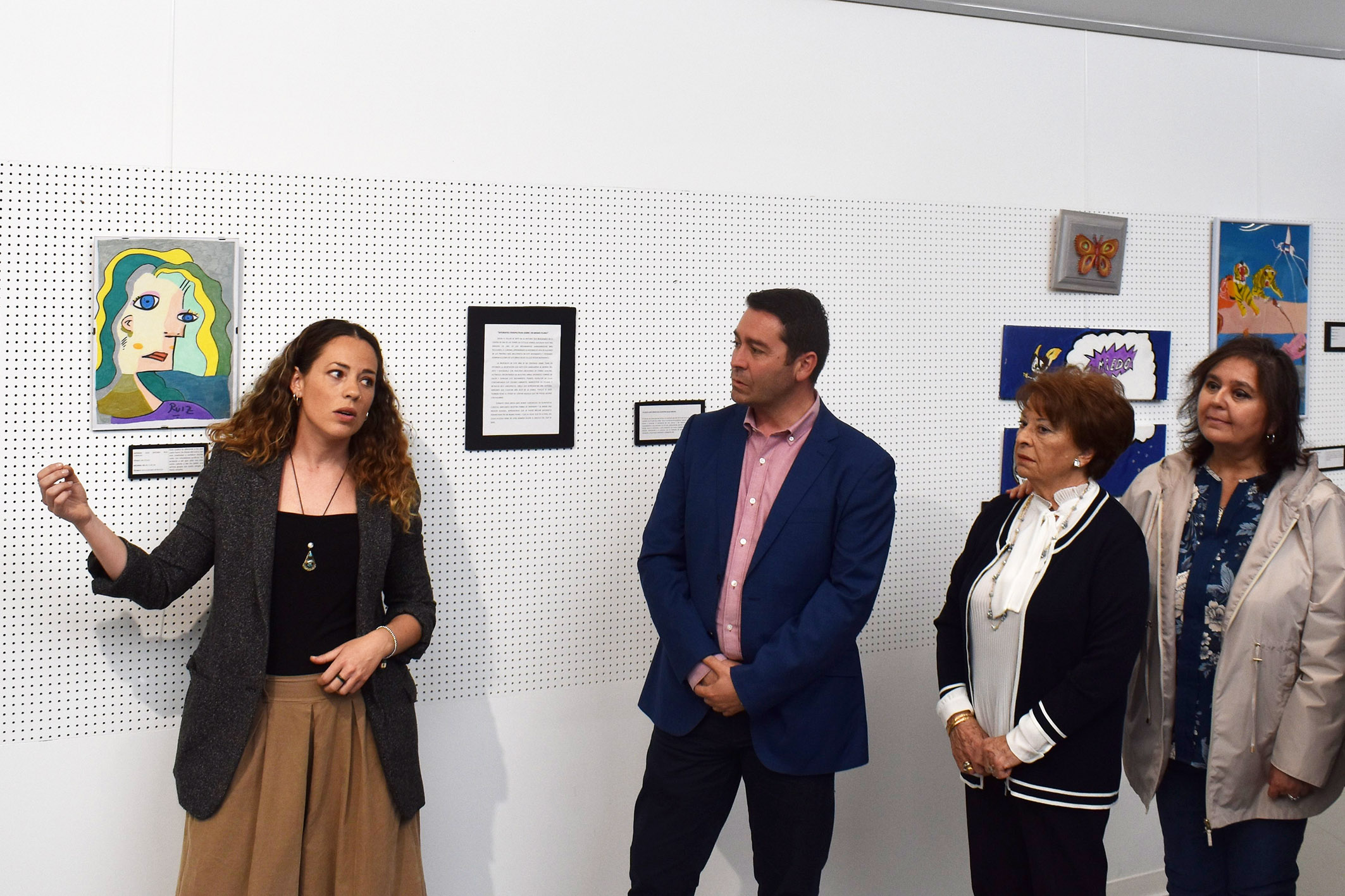 “Para nosotros es un orgullo acoger una exposición como esta, que no solo muestra talento artístico, sino también el importante trabajo que realiza AFES en el ámbito de la salud mental”, señala el alcalde Pedro José Noguera, que ha asistido a la inauguración de la exposición junto a su concejala de Servicios Sociales, María Dolores Sánchez, y la presidenta de AFES, María Teresa Martínez.