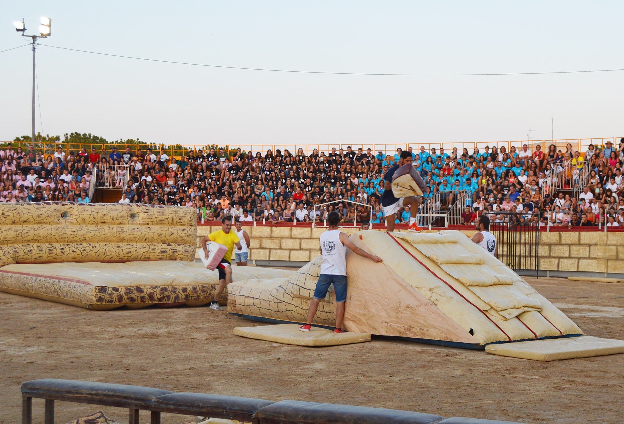 Participaron seis equipos en los que se conjuntaron las diversas peñas festeras del municipio para enfrentarse a un conjunto de pruebas que combinaban velocidad, astucia, fuerza y reflejos. Finalmente, tras un largo rato de esfuerzo de los participantes y de risas, entusiasmo y aplausos del público, se impuso el equipo azul, integrado por miembros de las peñas Los Parposos y L’Almazara.