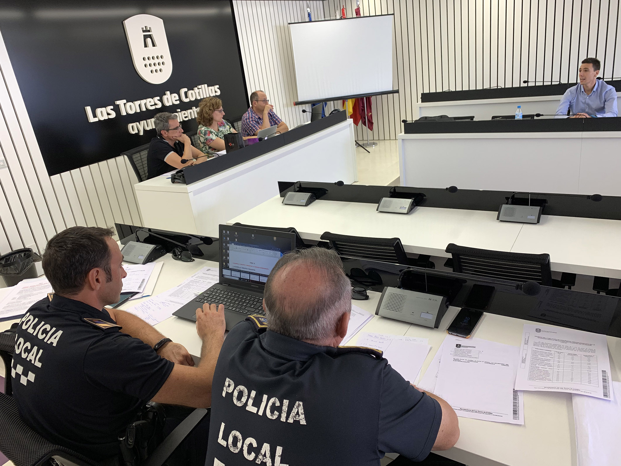 05/08/19 – El proceso de la oposición para adjudicar las tres plazas de empleo público de agente de Policía Local de Las Torres de Cotillas ha entrado ya en su recta final. 18 son los aspirantes que han llegado al examen oral, donde durante los últimos días han desarrollado ante al tribunal designado uno de los temas de dicha oposición. “Tras las pruebas físicas celebradas en el polideportivo los aspirantes realizaron un examen tipo test como paso previo a este último ejercicio”, explica el concejal de Seguridad Ciudadana, Francisco José Caravaca Bravo.