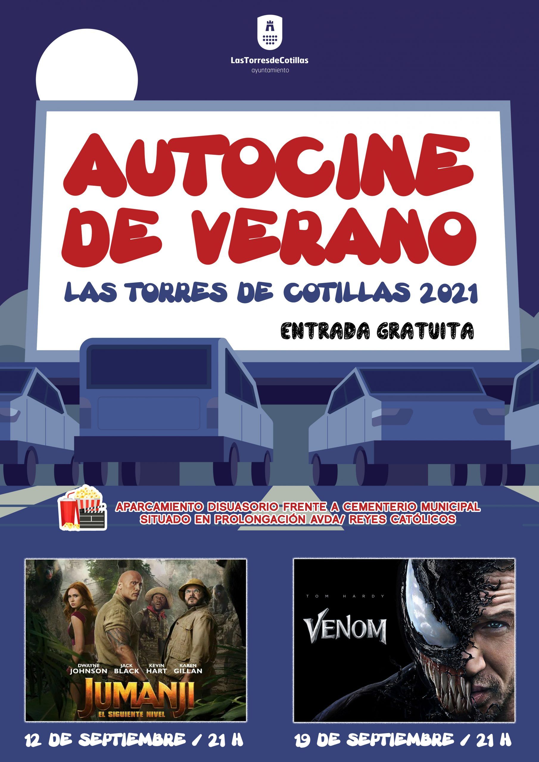 Por ello, se han programado dos películas: “Jumanji: el siguiente nivel” (12 de septiembre, 21 horas), protagonizada por Dwayne Johnson; y “Venom” (19 de septiembre, 21 horas), con Tom Hardy. Dos auténticos blockbusters para toda la familia que tendrán entrada gratuita y cuya proyección se realizará en el aparcamiento disuasorio situado frente al cementerio municipal (prolongación de la avenida Reyes Católicos).