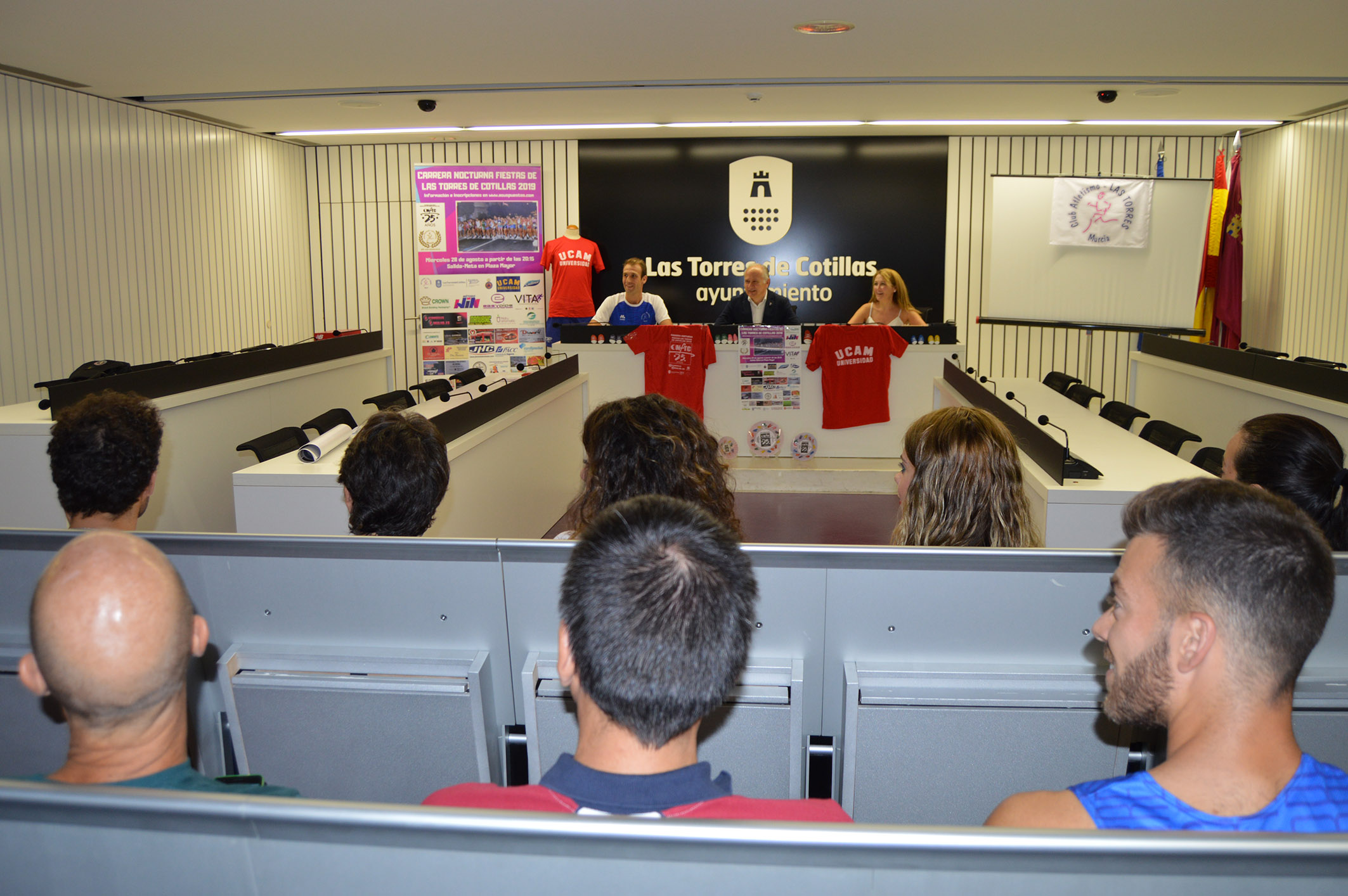 21/08/19 – La Carrera Nocturna Fiestas de Las Torres de Cotillas cumple este año su 25ª edición y lo hace en plena forma: con la intención de repetir como en los últimos años su número máximo de participantes, cifrado en 500 atletas de todas las edades. Una prueba que se disputará el próximo miércoles 28 de agosto (20’15 horas) y que fue presentada ayer en el Ayuntamiento torreño por el alcalde, Joaquín Vela Fernández, la concejala de Salud y Deporte, Alberta Martínez Vázquez, y el presidente del club Atletismo Las Torres, Ignacio Soria.