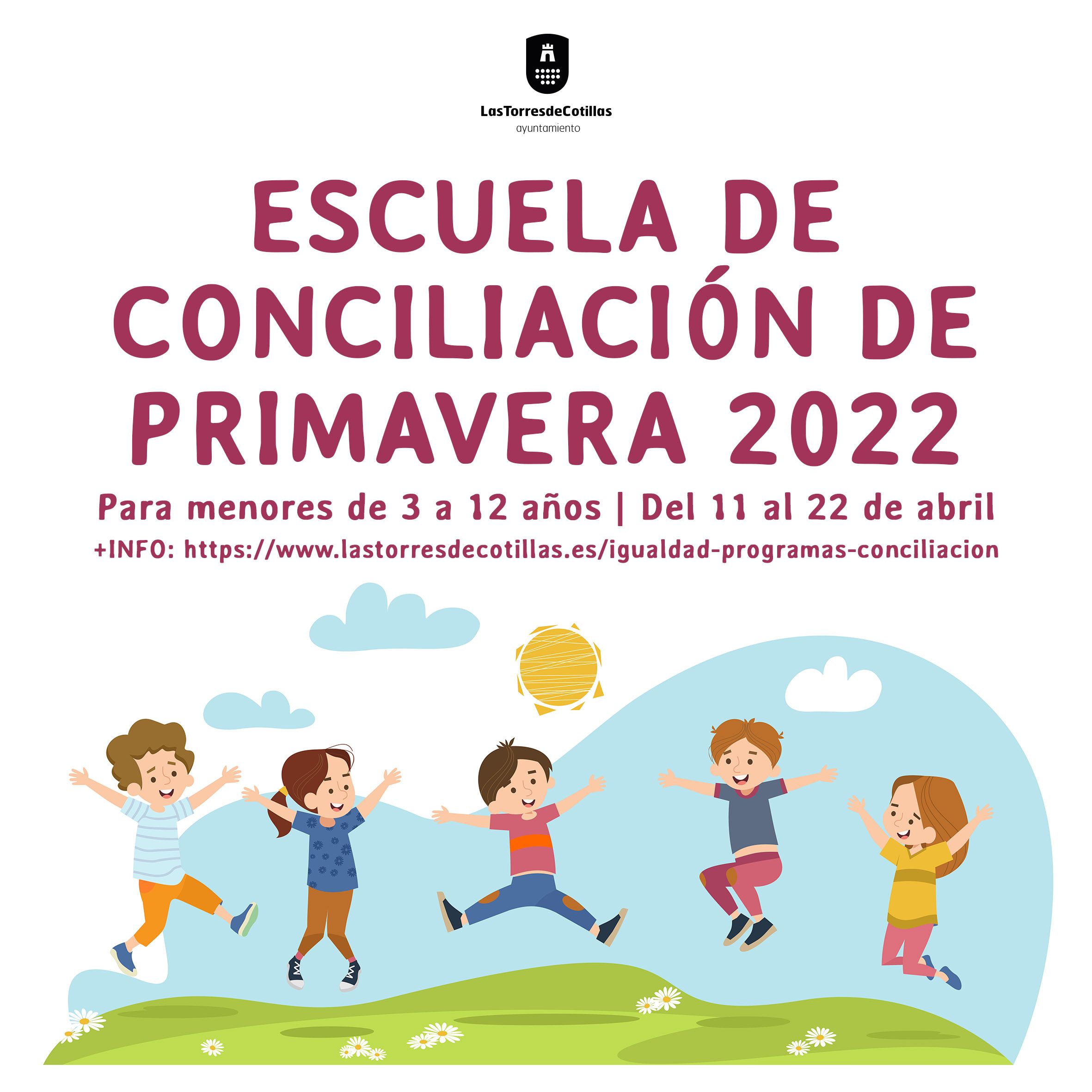 La Concejalía de Igualdad de Las Torres de Cotillas ha abierto el plazo de inscripción para la Escuela de Conciliación de Primavera destinada a menores de 3 a 12 años, que se llevará a cabo en el colegio Joaquín Cantero. “El número de plazas ofertadas es de 75 en total: 30 para menores de 3 a 6 años y 45 para menores de 7 a 12 años”, indica la concejala María del Mar Ruiz Rosillo, que recuerda que los asistentes disfrutarán de diversas actividades lúdico-educativas.