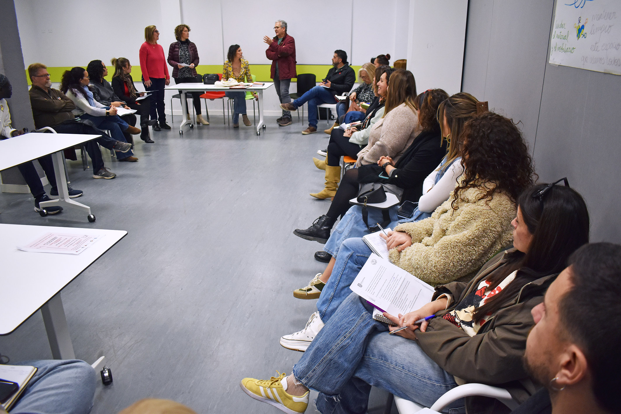 En esta reunión se trataron diversos temas, entre ellos la presentación de diversas actividades: una jornada de puertas abiertas del Centro de Salud, el programa “Mujeres seguras y libres” de Columbares, el curso “Camina entre telas” de Proyecto Abraham, las propuestas de formación en empleabilidad de Cruz Roja…