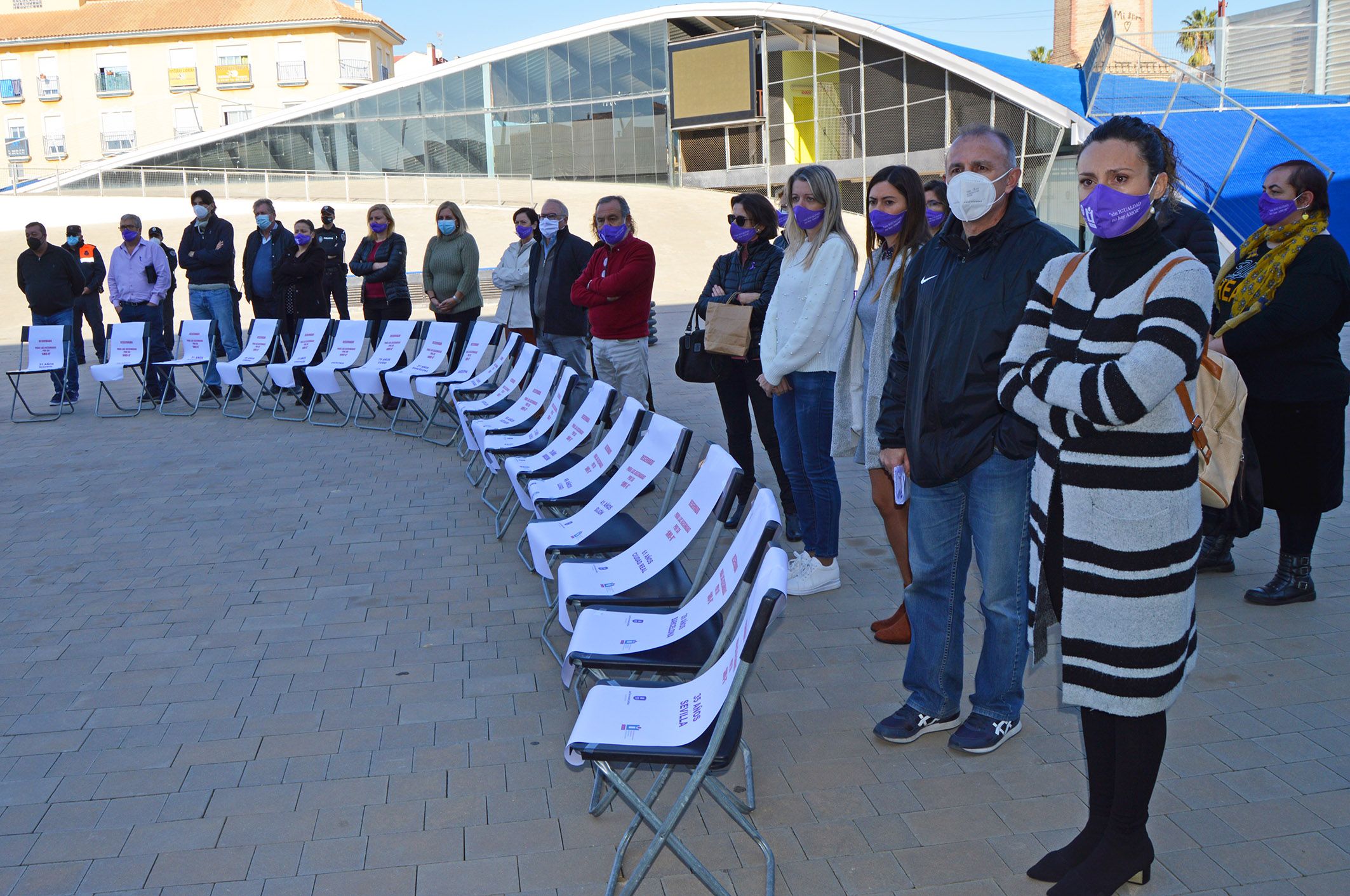 La Concejalía de Igualdad de Las Torres de Cotillas ha celebrado hoy miércoles 25 de noviembre, con motivo de la conmemoración del día internacional contra la violencia de género, un simbólico y emotivo acto en la plaza Adolfo Suárez. En él se ha recordado a las 47 víctimas (41 mujeres y 6 niños) que han perdido la vida en lo que llevamos de 2020 a causa de esta lacra social. “Se han dispuesto 47 sillas, reservadas para esas mujeres y pequeños asesinados, en las que se podía leer su edad y su lugar de residencia”, explica la concejala de Igualdad, Elisa Isabel Hurtado Avilés.
