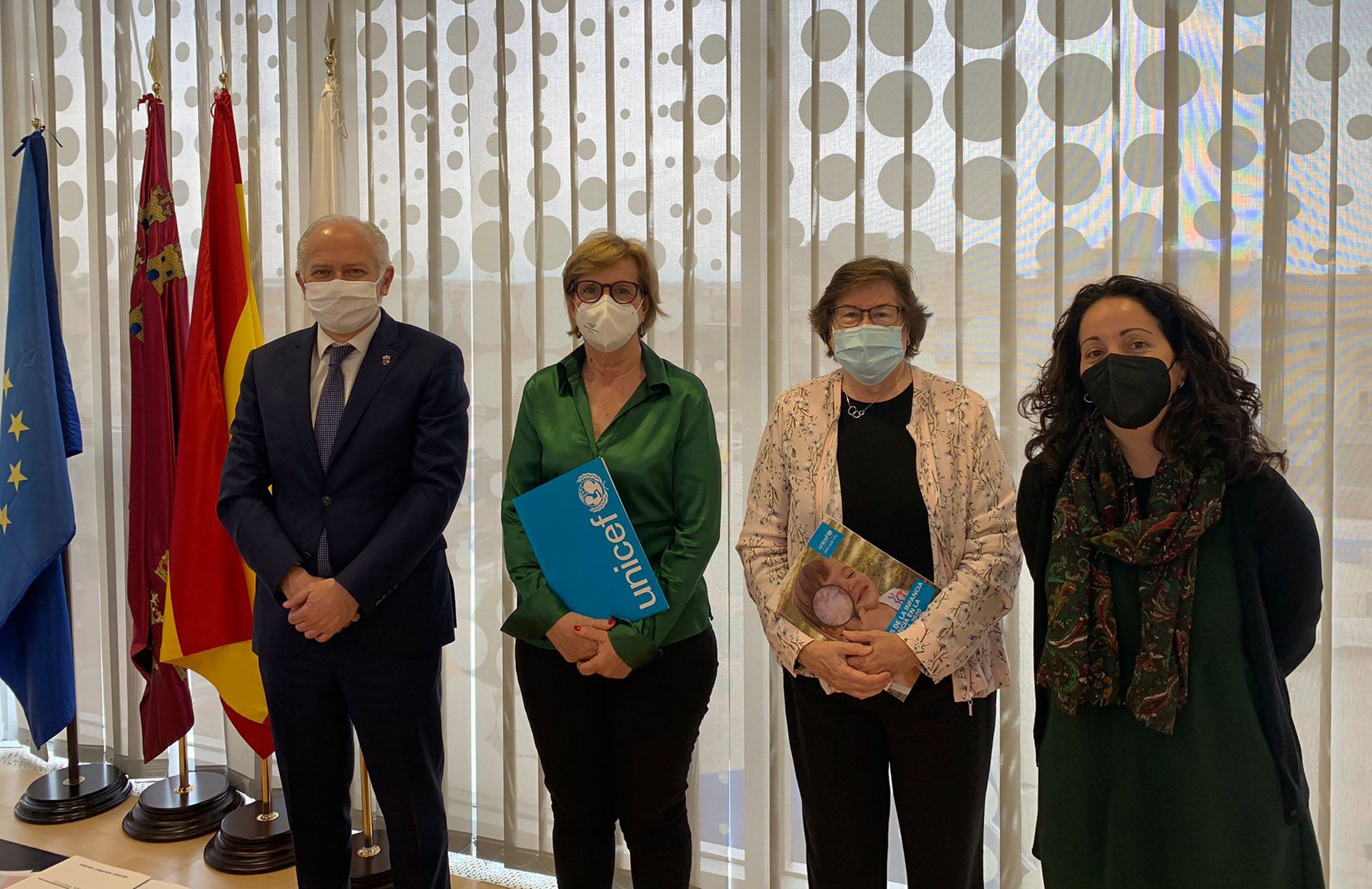 “No se puede desarrollar una política municipal sin tener en cuenta las necesidades de nuestra juventud, que es el futuro de Las Torres de Cotillas”, señala el alcalde torreño, Joaquín Vela Fernández, que se reunió para tratar este tema con la presidenta del comité regional de Murcia de UNICEF, Amparo Marzal. En este encuentro también participaron la concejala de Relaciones Institucionales, María Pilar Pérez Mas, y la coordinadora regional de UNICEF, Carolina Galváñ,