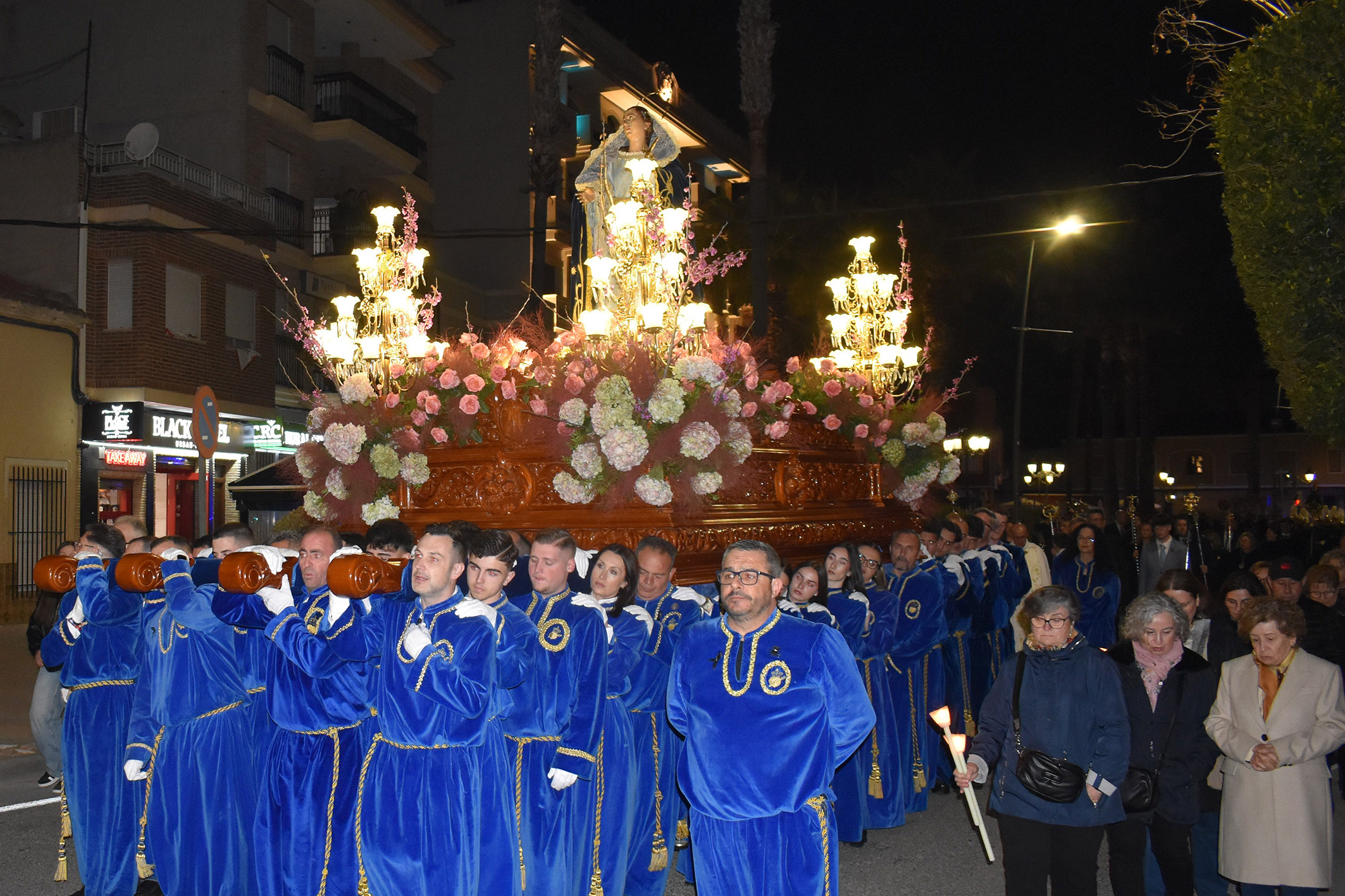 "Nos llena de cariño y fervor ver nuestras calles inundadas de azul y blanco, y sentir el respeto de esta procesión por la Dolorosa", destaca el alcalde Pedro José Noguera, que participó en el desfile junto a otros miembros de la corporación municipal.
