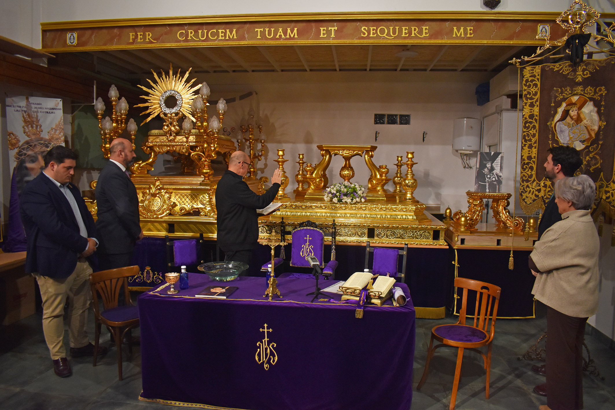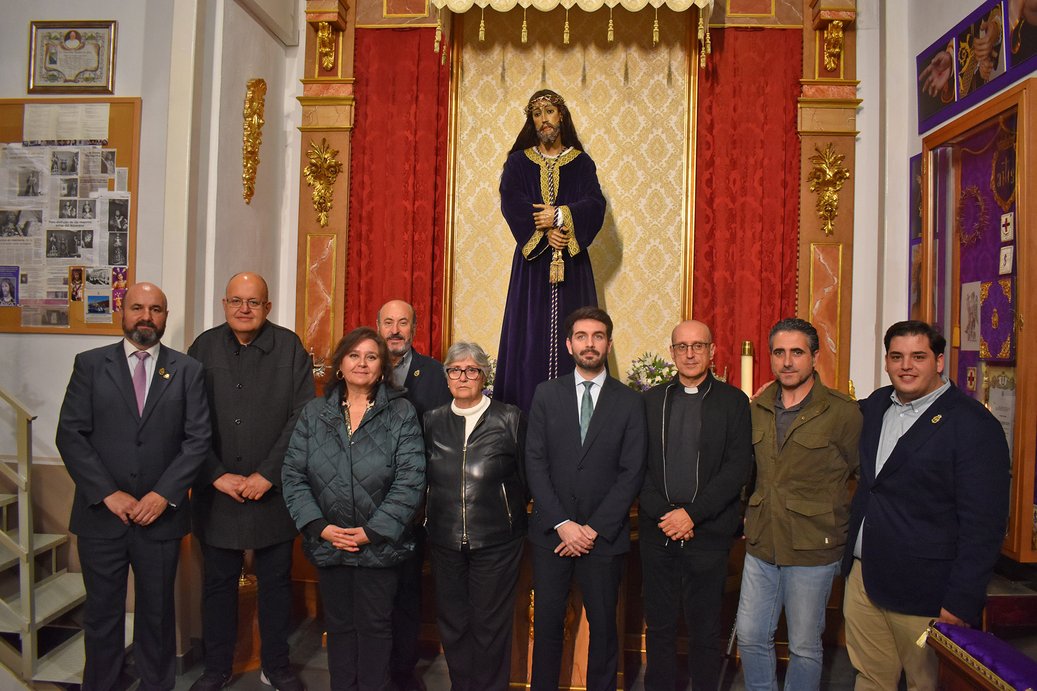 Además, en este encuentro el párroco de Nuestra Señora de la Salceda, Antonio Sánchez, bendijo el nuevo trono que saldrá portando la imagen de Nuestro Padre Jesús Nazareno en las procesiones de Viernes Santo por la mañana y Domingo de Resurrección. Este trono ha sido tallado en los talleres Lorente de la pedanía murciana de Nonduermas.